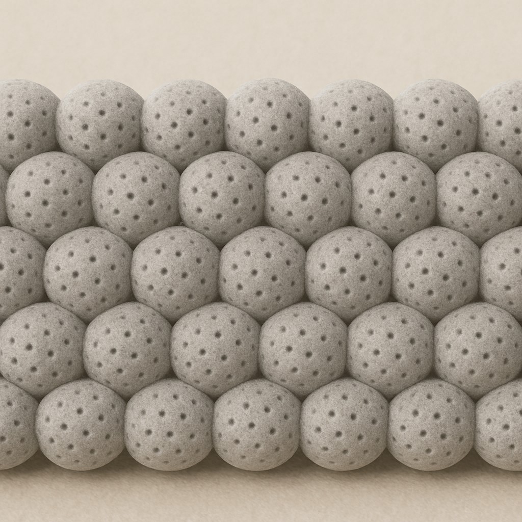 近年來,建材領域興起一種更具潛力的解法──使用輕質多孔骨材作為樓板隔音結構的一部分。此類骨材表面及內部具備大量微細氣孔,當聲波穿透這些孔隙時,且骨材堆疊遇到噪音時,震動摩擦產生所謂的「阻尼摩擦效應(Damping Friction Effect)」,能更進一步消除噪音。