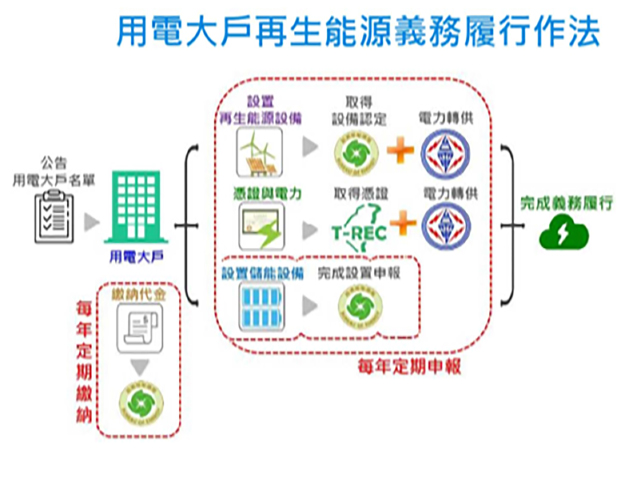 配合經濟部為推動再生能源,要求契約容量達 5,000瓩( kW)以上的大型電力用戶(如科技、石化、鋼鐵業),需達成契約容量 10% 的再生能源義務,本公司透過自行設置儲能方式履行,善盡社會責任並接軌國際綠色供應鏈趨勢。