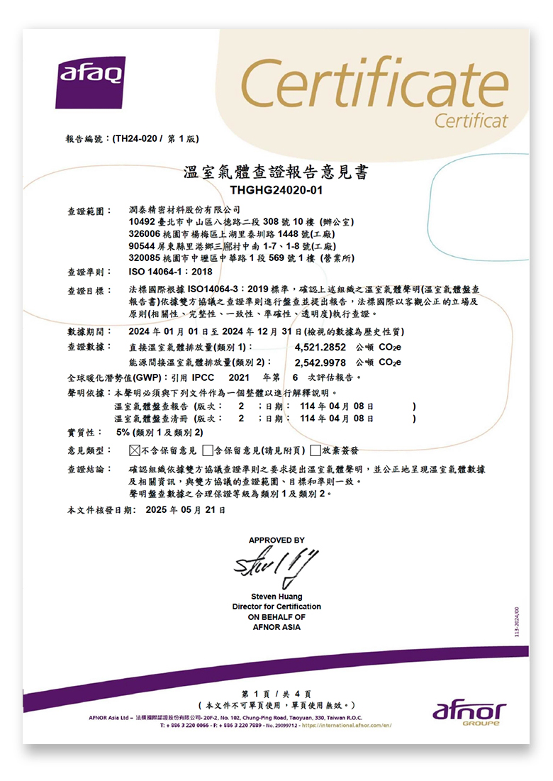| 2024年度溫室氣體查證報告意見書-其他廠區 (點此放大瀏覽完整頁面) |